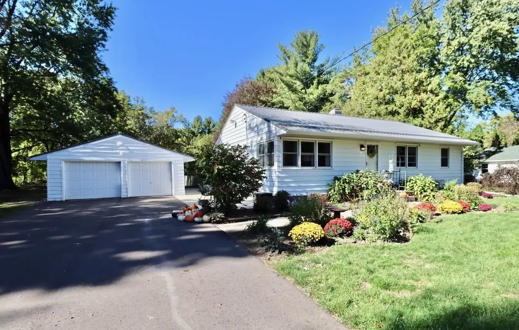 Welcome to your private oasis! This charming ranch is nestled on a serene 1.47-acre wooded lot. Enjoy beautiful updates throughout, including elegant wood flooring, stylish quartz countertops, and a charming front door. The home features a refreshed bathroom, a versatile office space, and a cozy sun porch, all surrounded by a stunning garden. Plus, a durable metal roof adds to the home's appeal. Experience comfort and nature in one perfect package!