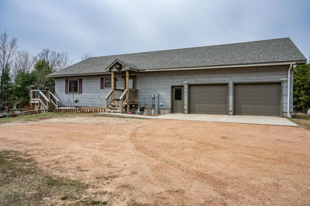 Welcome to this beautiful log timber home nestled on a very quiet 5 aces. This 5 bedroom, 3 bath home has plenty of room for all your needs that even has a room for an office/den. The wide open concept of the kitchen, dining, and living room lets you be part of everything. The basement is almost entirely finished with 3 bedrooms, a full bathroom and another living room. This home is in a very peaceful area but offers close proximity to Castle Rock Lake, UTV/ATV routes but still offers fiber internet to keep you connected. Don't miss out on this great opportunity.