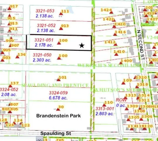 Enjoy your private property on quiet lot located between residential area west of 1412 and 1416 N 2nd St and east of 907 and 909 Sand Street and north of Brandenstein Park. Partially wooded lowland. Approximately 145' W x 627' L. Recreational Land only.Not a buildable lot.